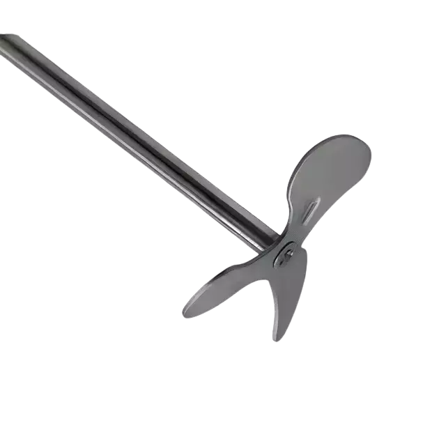 Hélice tipo naval ideal para uso em agitadores mecânicos laboratoriais, projetada para promover excelente eficiência de agitação em líquidos de baixa a média viscosidade.